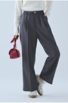 ウエストぐるりゴムでイージーな作りながら、センタープレスや後ろ身頃の切り替えで脚をスッキリ見せます。