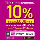 12/6(土)~14(日)の期間、AEONPayのお支払いでご利用金額の10%分がWAONPOINTでポイントバックされます!