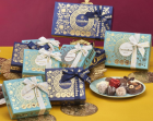 今年の 化粧箱は ターコイズ グリーン と ネイビー ブルーです
